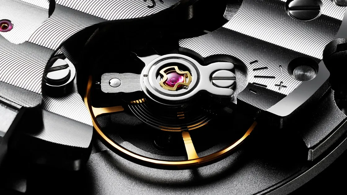 Diashock is a structure developed to enhance the movement’s resistance to shocks. It is used as a bearing, such as for the balance wheel pivot, a section of the movement that is especially sensitive to shocks and jolts. With Diashock, the structure maintains high stability even when subjected to sudden shocks.