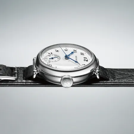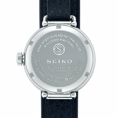 The case back and the large crown carry the trademark “S” that Kintaro registered in 1900 as a symbol of the Seikosha factory. Despite the destruction of his company by the Great Kanto Earthquake in 1923, he persevered and managed to launch the 1924 wristwatch the following year. On the new creation’s caseback, just above the trademark, appear his name and the quote that so aptly captured his philosophy for the company. The watch features movable lugs and a pull-through leather strap, which was common at the time of the original watch’s release. They have been crafted to ensure the comfort and durability necessary today.