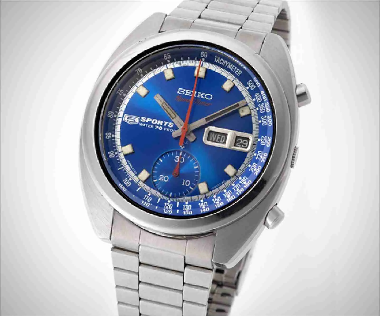 As the world’s first automatic chronograph with a ‘magic lever’, column wheel and vertical clutch, this may have been the world’s first such timepiece, and it was a milestone in Seiko’s journey toward pre-eminence in chronograph technology.