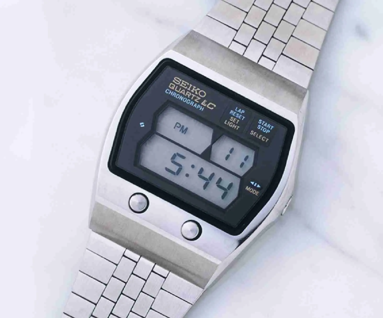 In 1975 Seiko launched the world’s first digital quartz watch with a chronograph, the 0634. It could record time to 1/10 of a second and had a lap time function. It also incorporated an internal light, so that it could be seen clearly in the dark. It became a huge hit and created the market for high-function digital watches.