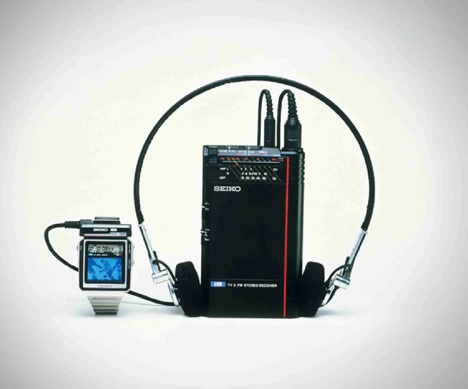 The world’s first watch designed with both a tuner and headphone jack for watching TV at any time or place. Also equipped with an FM radio, together with all of the standard watch functions such as alarm, chronograph, and calendar.