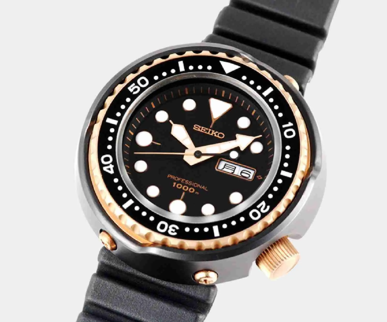 The Diver’s 1000m was the first watch to use ceramic material for the outer case layer. The lightweight, corrosion resistant titanium case with a remarkable one-piece structure enabled this watch to withstand depths of 1,000 m.