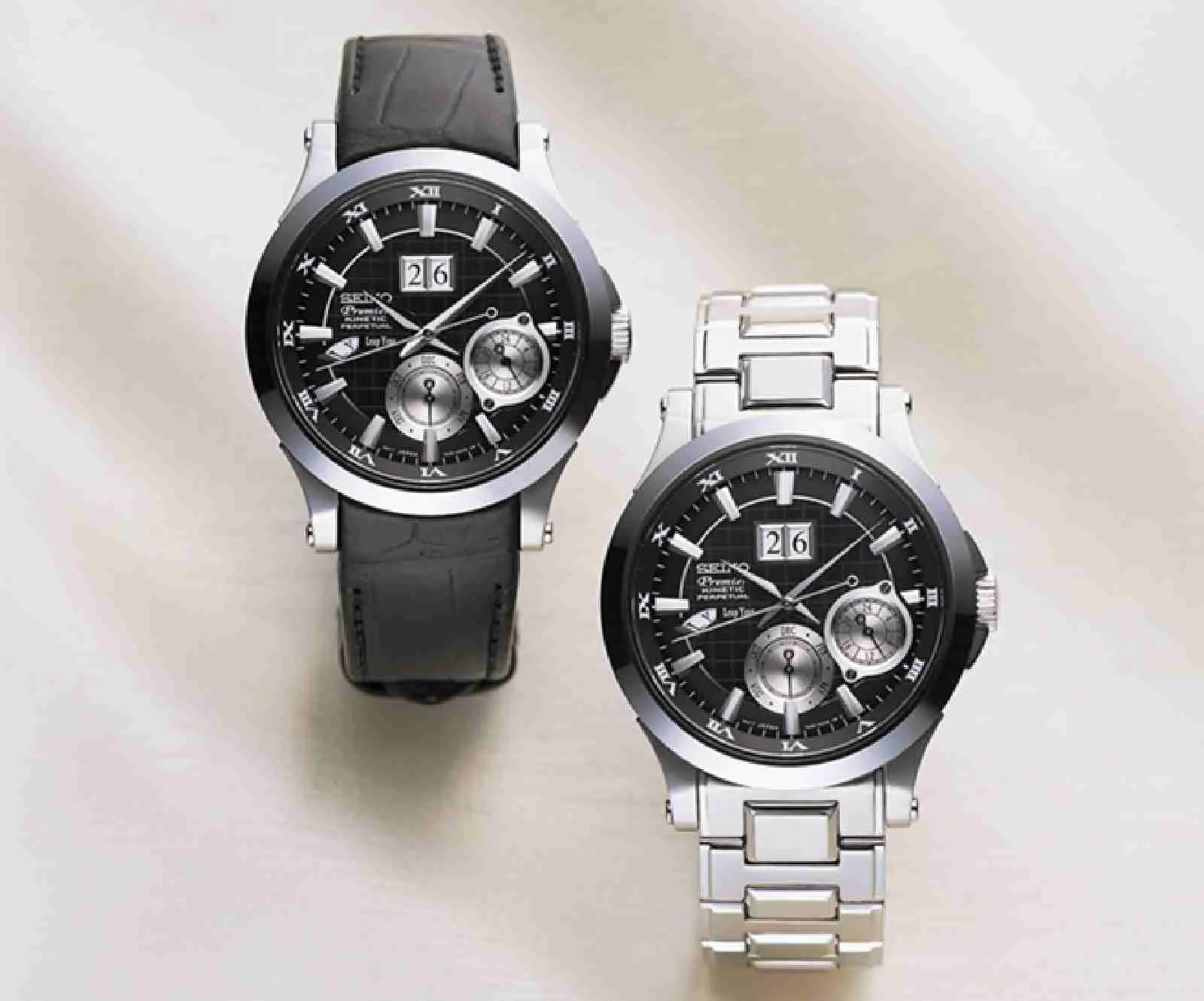 Powered by the motion of your body, it is the first watch to generate and save its own electricity. It goes to sleep when not worn and the hands return automatically to the correct time when put on again. The perpetual calendar will be correct until February 28, 2100.