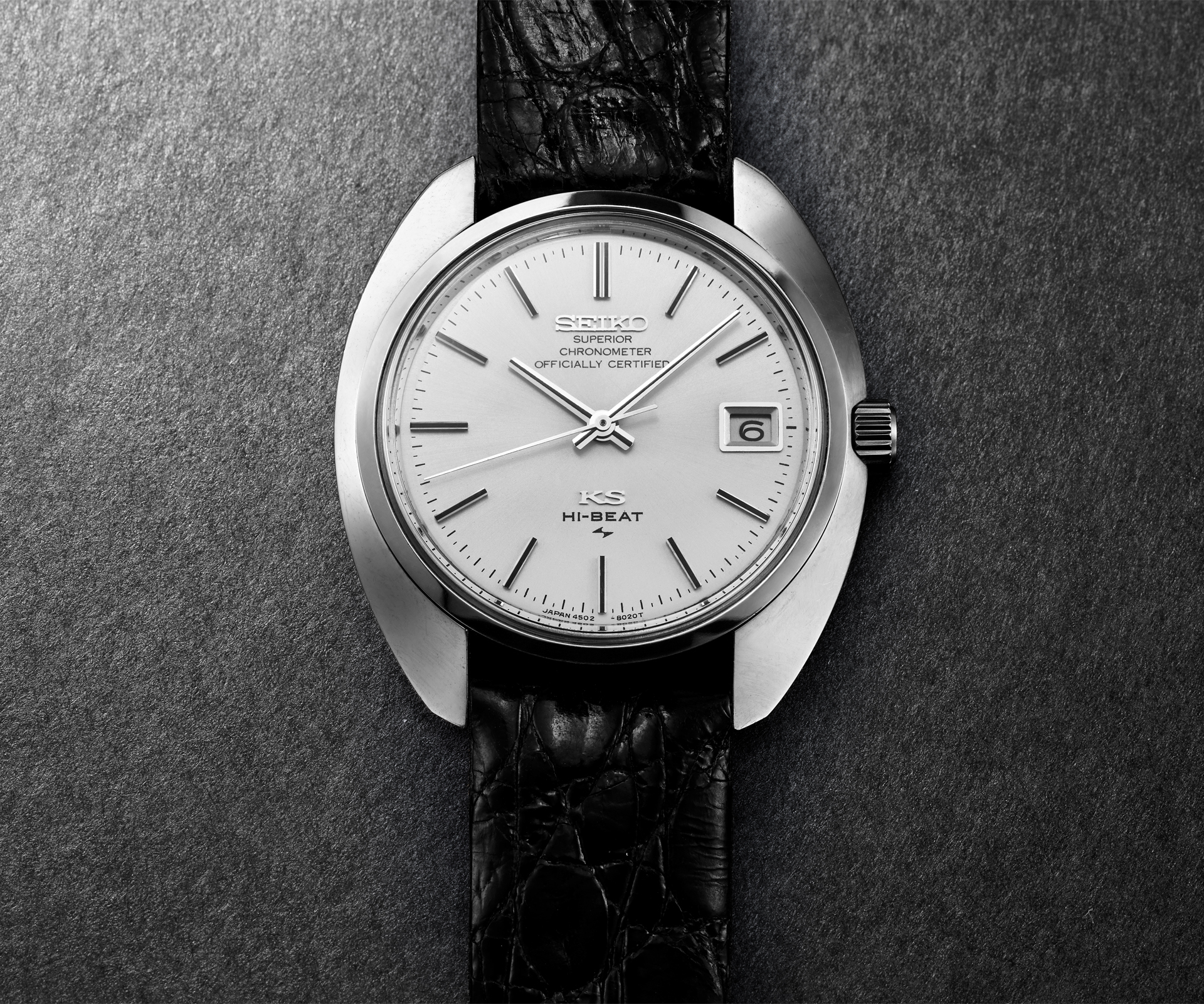 Based on the King Seiko 45KCM from 1969, the KS1969 series embodies the characteristically curved silhouette of the original as well as the signature thin profile, taking advantage of the automatic Caliber 6L35 remarkable slimness. The result is a luxurious dress watch is as comfortable to wear as the original that inspired it.