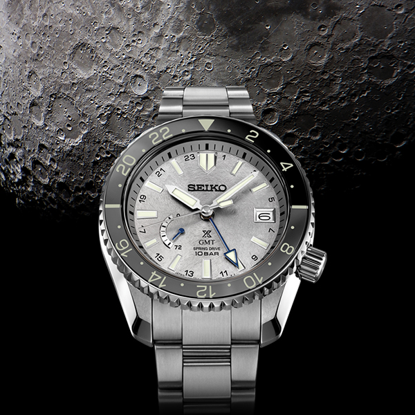 The accuracy and special construction of Spring Drive make it uniquely suited for space and resistant to temperature and pressure changes. In fact, the movement has passed the rigorous testing required for space travel and maintained its accuracy and functionality while on board the International Space Station. Inspired by the theme of space travel, U.S. Special Editions reflect motifs based on the moon, earth, and other heavenly bodies. SNR051 features an intricate gray patterned dial representative of the silvered lunar surface and a multi-tone gray sapphire GMT bezel reflective of the light and shadows of space, while SNR053 showcases a dramatic black to green gradation evoking the darkness of space illuminated by the green aurora affect visible around the earth’s polar regions. The newest creation SNR055, echoes the boundary of earth and space and the halo effect created by the sun setting behind the earth, while vibrant blue colors fade to gray. All are accented by a vibrant GMT hand which easily tracks a second time zone at a glance.