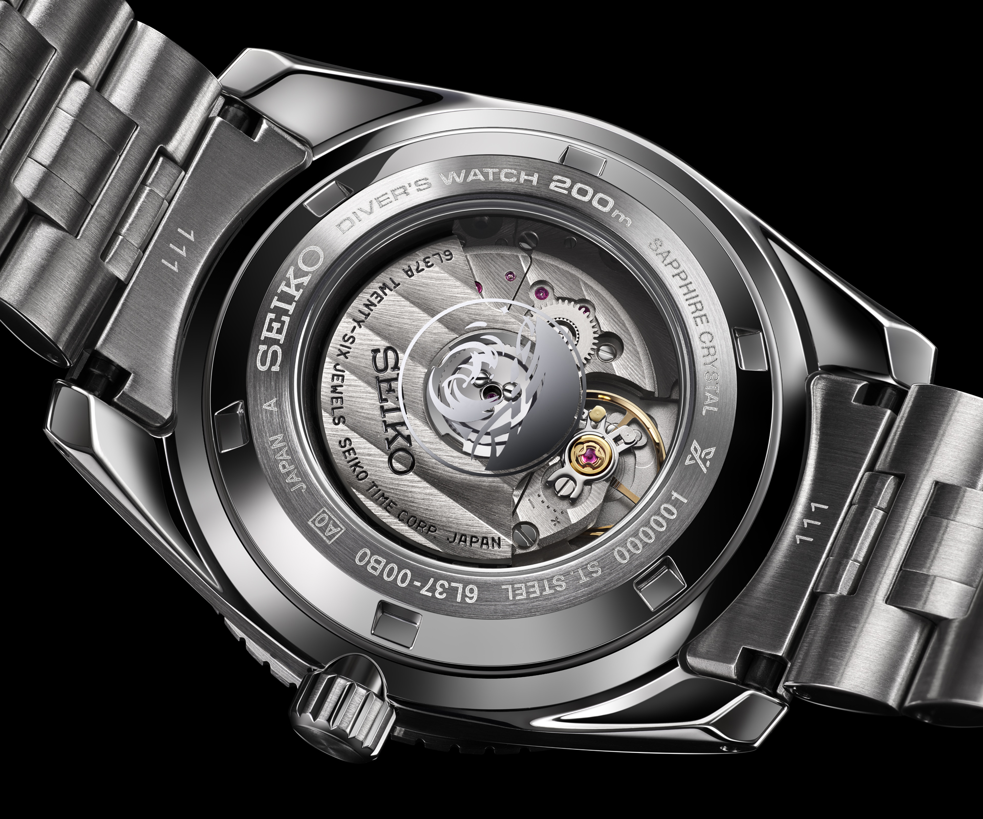 Powered by the slim, yet robust caliber 6L37, specially engineered with techniques and materials selected to meet the strict standard for durability and shock resistance necessary for diving, the 6L Marinemaster series is a milestone in Seiko watch construction, featuring the first exhibition caseback on a Prospex diver’s watch. By reconsidering the case structure, Seiko created its thinnest mechanical diver’s watch at just 12.3mm, offering a view of the finely finished, high-performance mechanical movement in action. The edges of the case and bezel are mirror-finished to prevent snagging and damage to the equipment used by divers, creating a brilliant appearance while improving functionality, and the bracelet is designed with mirror-finished, ellipse-shaped links with dual-curved surfaces for the ultimate in comfort and wearability.