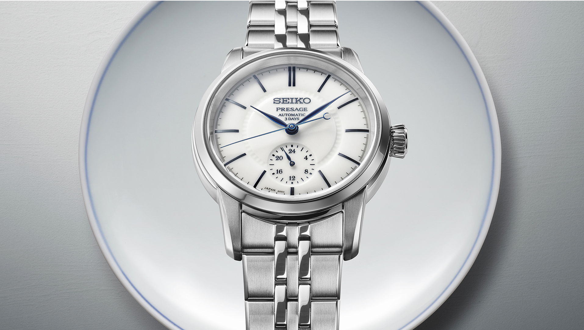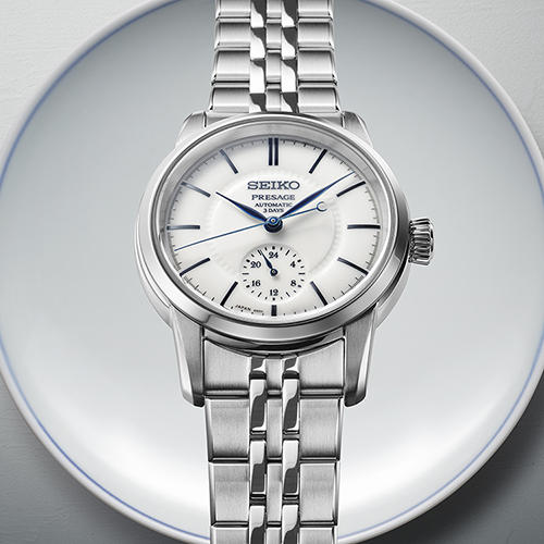 Presage porcelain dials are made by an experienced manufacturer in Arita that has been creating porcelain since 1830. Master craftsman Hiroyuki Hashiguchi and his colleagues in Arita, a town synonymous with porcelain, have been developing dials with the Presage team for years.