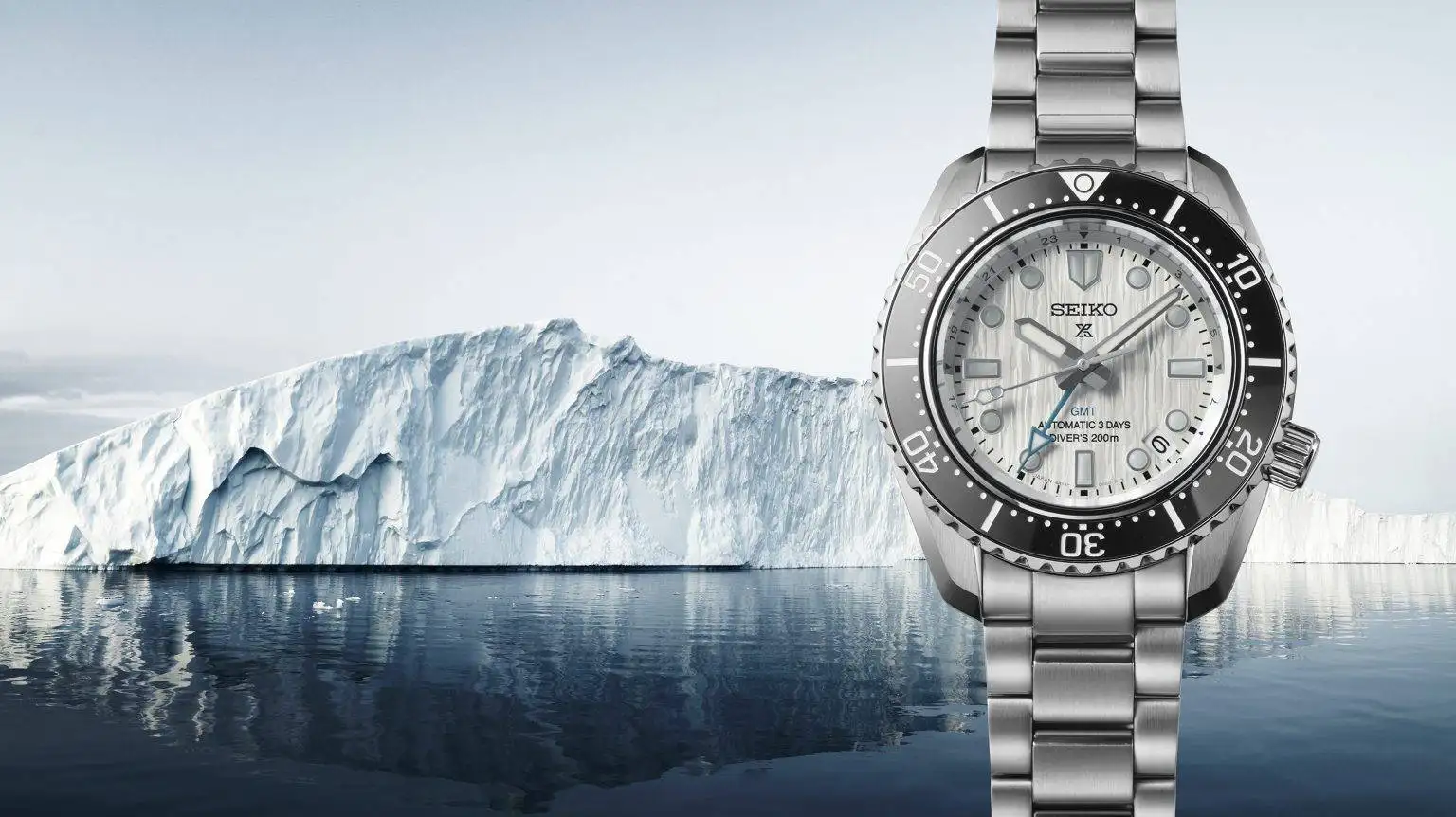 The new creation’s textured dial captures the power of the polar glaciers that shape the landscapes and seascapes of the Arctic and Antarctic. Accented by a light-blue GMT hand, the dial’s silvery-white hue and delicately striated surface create a unique depth that invites repeated looks.