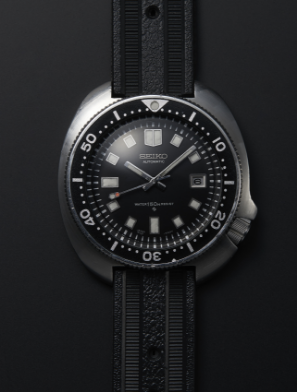 Five years after making Japan’s first diver’s watch in 1965, Seiko introduced a new diver’s watch with a flowing case design and an asymmetrical extension that protected the crown at the four o’clock position. With its solid construction, 150-meter water resistance, and luminous hands and indexes, it was perfect for those who needed a timepiece with exceptional strength and legibility.